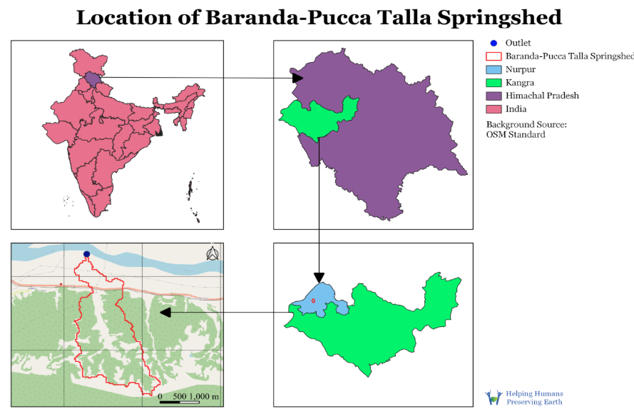 Under the ‘Preserving Earth’ initiative, we are working on a Baranda Pucca-Talla Springshed based Watershed Project which is named on the basis of major panchayats covered in the catchment area. The project is located in Nurpur block of Kangra district, Himachal Pradesh. The project aims to restore the catchment and its spring sources following the principle of ridge to valley and participatory approach with the support of NABARD.
